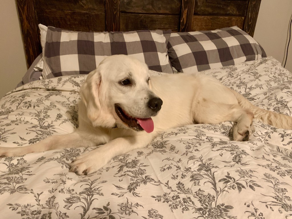 Queen Lucy of Boucle D’or. “Lucy” is our beautiful up-and-coming female. She is the daughter of our “Willa”, and Sweet Cream Golden’s “Jack.” Her father is a European Champion from Serbia! She has an amazing English-colored coat, a beautiful blocky head, and a wonderfully sweet personality.
